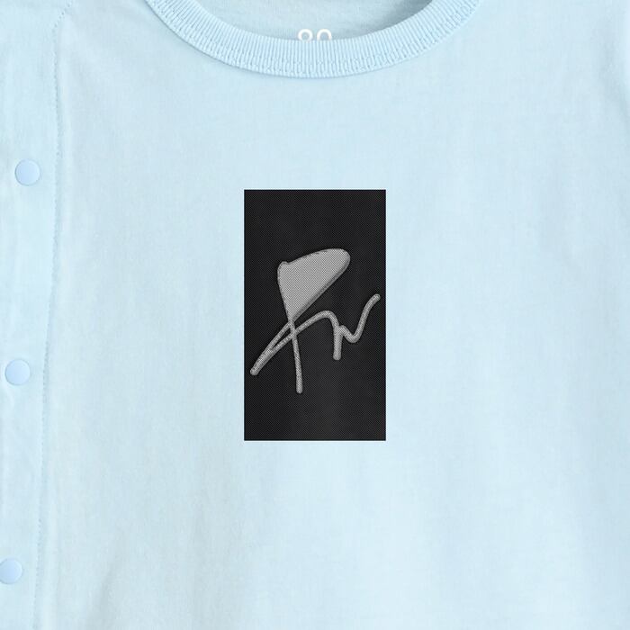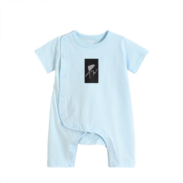 スナップボタンをサイドに配置し、赤ちゃんのおなかに負担のかからないゆったりとしたデザイン。